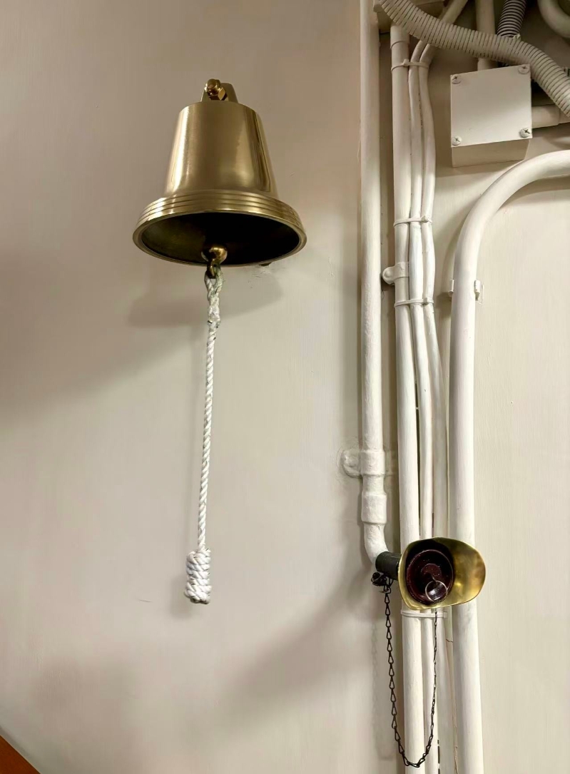 每層有小銅鐘,以及透過銅管傳話的“話筒”,給不同樓層的工作人員及住客通話。(香港中通社記者 黃璇攝)