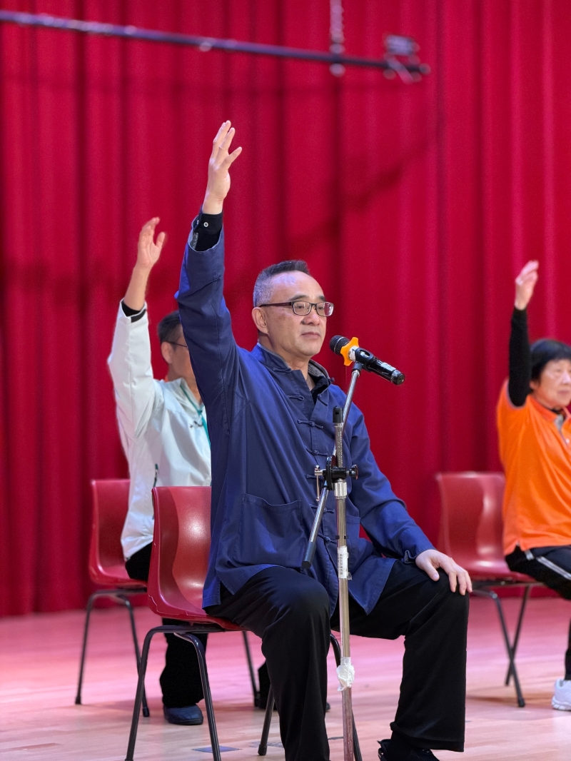 仁武會主席嚴義松闡述了創立“活力太極功”的初心。他指出,此套功法專為節奏急促的都市人設計,提供坐式與站式兩種選擇,讓人們能隨時隨地鍛煉,真正實現“全民健身”的目標。仁武會作為慈善機構,多年來深耕社區,積極推廣健康生活,曾舉辦中醫講座、慈山寺養生一日遊等活動。他強調:“今次活動能集合眾多團隊合辦,正是希望集結社區力量,讓更多人受惠,體驗養生運動的樂趣。”