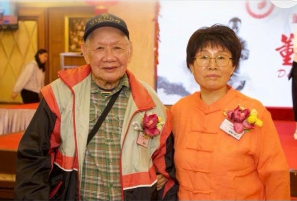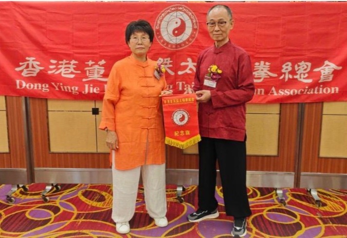 香港董英傑太極拳總會創會會長董鄭小芬(右)與永遠會長嚴景初。