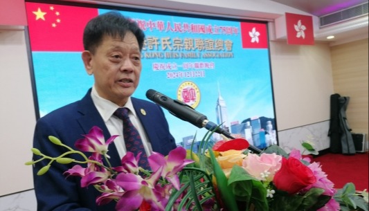 香港董英傑太極拳總會創會會長董鄭小芬感謝來自美國的董氏第三代傳人董增辰遠道而來參加會慶。