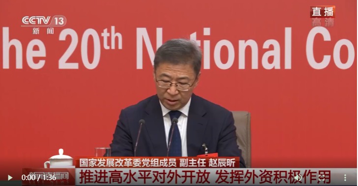 香港中通社10月17日電 10月17日上午, 中共二十大新聞中心舉行第一場記者招待會。發展改革委黨組成員、副主任趙辰昕表示,我們深刻認識到,對外開放是中國的基本國策和鮮明標識。中國擴大高水平開放的決心不會變,同世界分享發展機遇的決心不會變。 趙辰昕說,中國推動經濟全球化朝著更加開放、包容、普惠、平衡、共贏方向發展的決心也不會變。未來,中國開放的大門只會越開越大,中國發展將為地區和世界提供更多的機遇,注入強勁的動力。