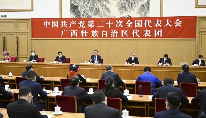 微鏡頭·習近平總書記參加黨的二十大廣西代表團討論 時間:2022年10月17日上午 日程:黨的二十大廣西代表團討論黨的二十大報告