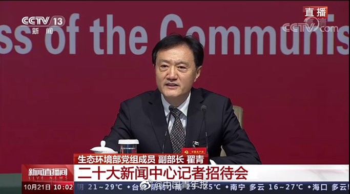 香港新聞網10月21日電 中國青年報報道,今天上午,生態環境部黨組成員、副部長翟青在黨的二十大記者招待會上說,2021年,全國地級及以上城市,PM2.5平均濃度比2015年下降了34.8%,空氣優良天數的比例達到了87.5%。地表水(Ⅰ~Ⅲ類)斷面比例達到84.9%,劣Ⅴ類水體比例下降到1.2%。中國全面禁止了洋垃圾進口,實現了固體廢物零進口目標。“這些年來,我們的藍天多了,水清了,土也凈了。” 他還說,我國生態文明建設的決心之大前所未有,力度之大前所未有。把“美麗中國”納入社會主義現代化強國目標,把“生態文明建設”納入“五位一體”總體布局,把“人與自然和諧共生”納入新時代堅持和發展中國特色社會主義的基本方略,把“綠色”納入新的發展理念,把“污染防治”納入三大攻堅戰。這充分彰顯了生態文明建設在黨和國家事業發展中的重要地位,也表明了我們黨加強生態文明建設,加強生態環境保護的堅定意志和堅強決心。