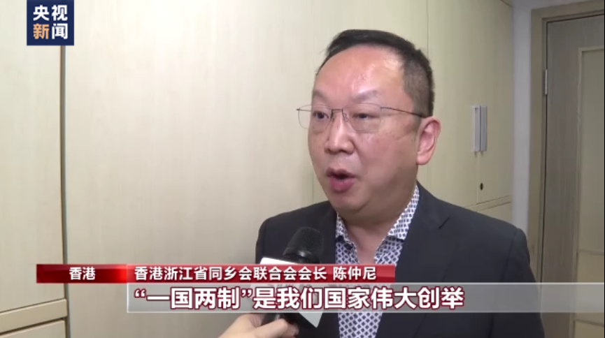 香港浙江省同鄉會聯合會會長 陳仲尼:聽了習近平總書記的報告以後倍受鼓舞,習近平總書記也說了“一國兩制”是我們國家偉大創舉,也是維護香港長期繁榮穩定的最佳制度安排,必須長期堅持,並且我們根據憲法以及基本法,堅持“一國兩制”,港人治港。