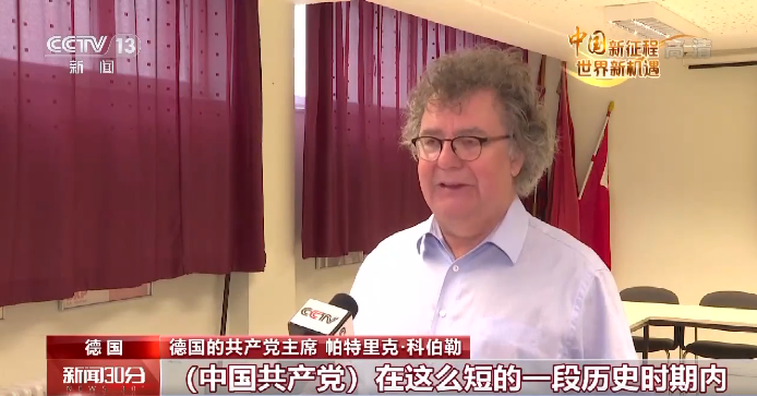 德國的共產黨主席 帕特裏克·科伯勒:(中國共產黨)在這麼短的一段歷史時期內取得了這樣的成就,擺脫了絕對貧困,這正是中國共產黨交出的答卷,是社會主義理論,馬克思主義與中國實踐相結合的最佳證明。