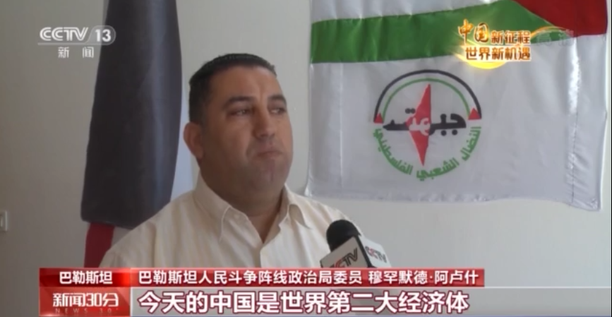 巴勒斯坦人民鬥爭陣線政治局委員 穆罕默德·阿盧什:今天的中國是世界第二大經濟體,這是一個非常重要的指標,我們作為中國的朋友,堅信中國有光明的未來,堅信中國將在正確的發展道路上不斷前進。