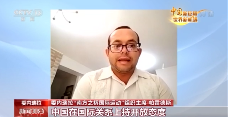 委內瑞拉“南方之橋國際運動”組織主席 帕雷德斯:中國在國際關係上持開放態度,維護聯合國以及聯合國憲章,持續推動世界和平,中國在國際事務中發揮著重要的作用,為世界提供了一個可借鑒的榜樣。 【編輯:许丰悦】