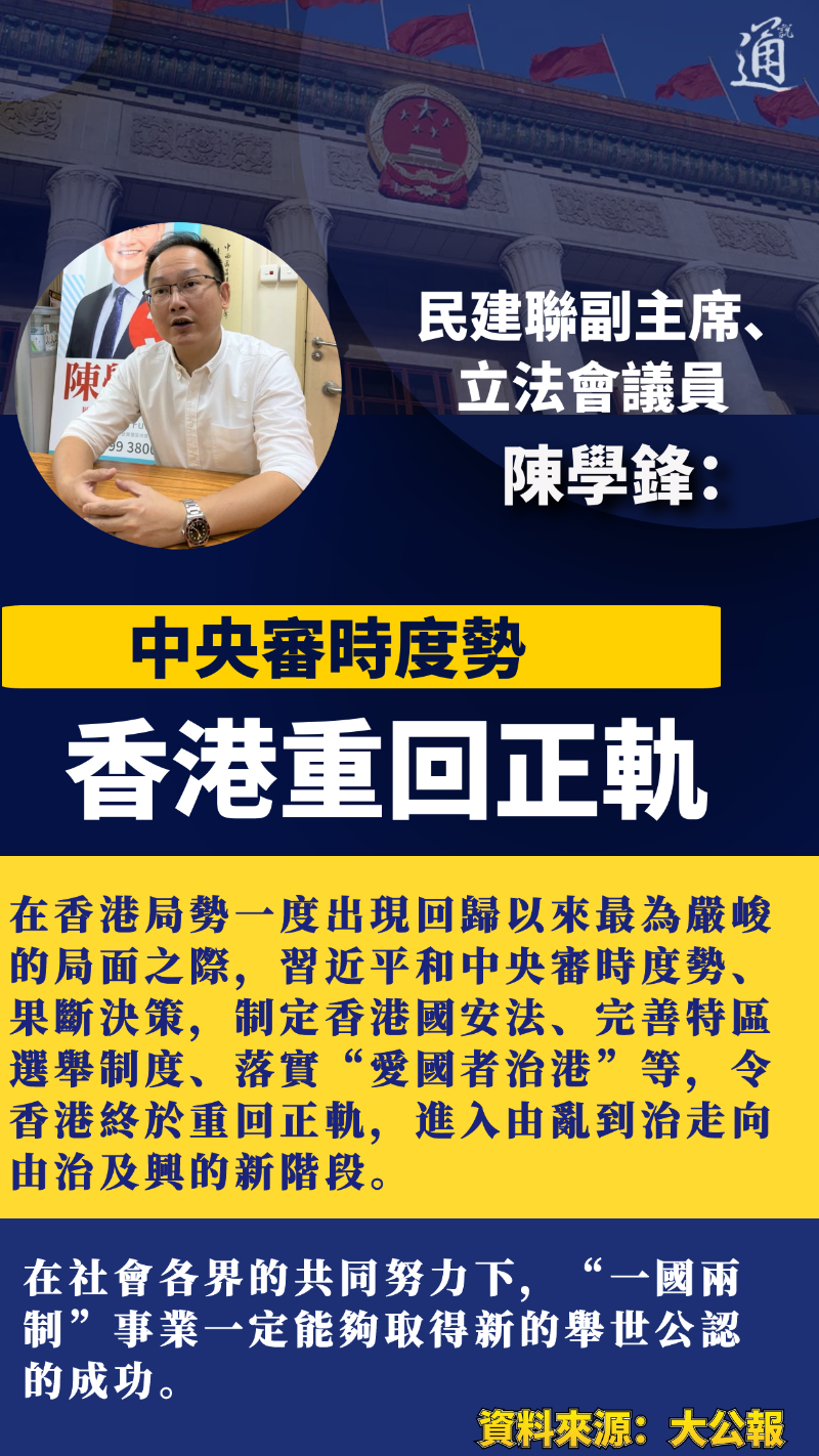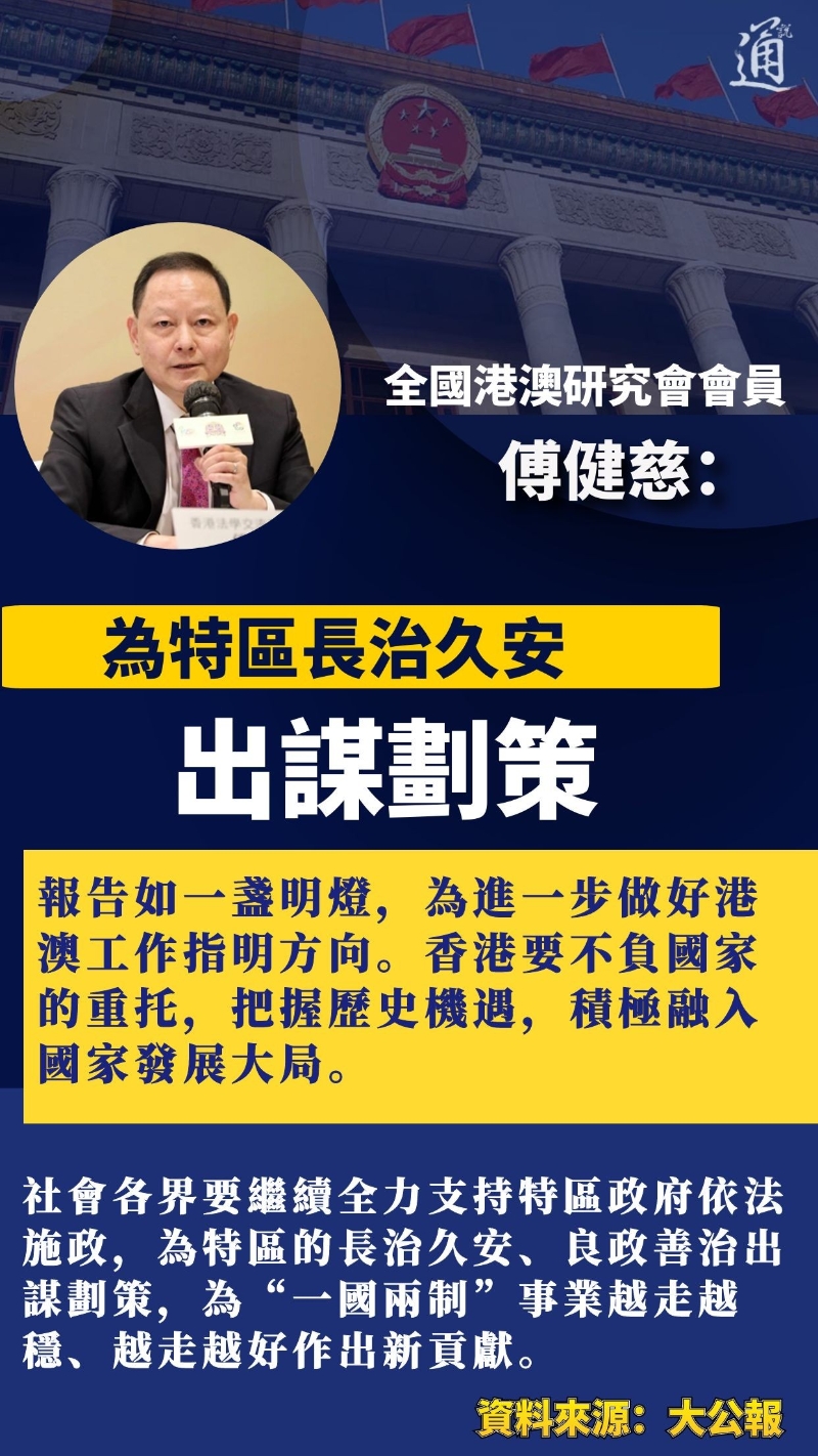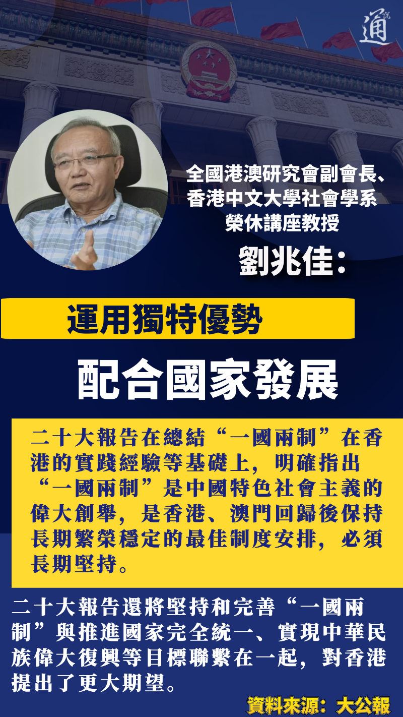 就報告中的涉港論述,香港多名專家學者、政界人士指出,二十大報告系統闡述堅持和完善“一國兩制”的新理念新思想新戰略,為做好港澳工作提供了根本遵循和行動指南,必將在香港本地及國際社會產生正面的穩定作用。