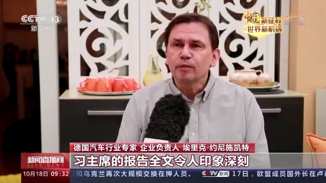 德國汽車行業專家 企業負責人 埃里克·約尼施凱特:習主席的報告全文令人印象深刻,尤其是其中提出的環保目標。眼下,所有國家都面臨能源供應和碳排放問題,習近平主席提出了全國致力於減少二氧化碳排放的宏大目標。現在各國都致力於發展電動汽車,在我看來,對中國來說是巨大機遇,不僅在國內,同時也在海外引領電動交通的未來。