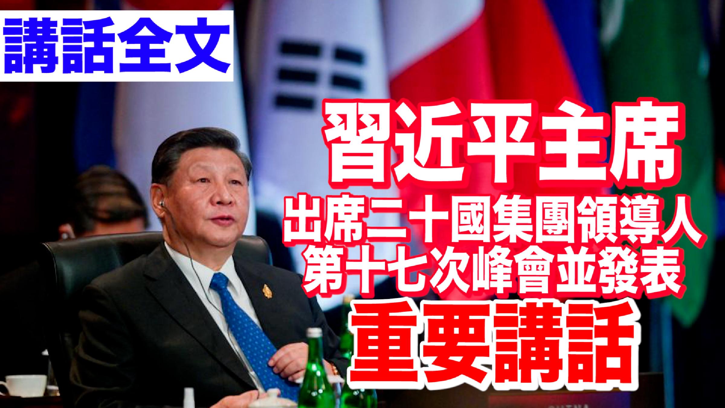 香港新聞網11月16日電 據央視新聞消息,當地時間11月16日下午,中國國家主席習近平即將出席二十國集團領導人第十七次峰會閉幕式。