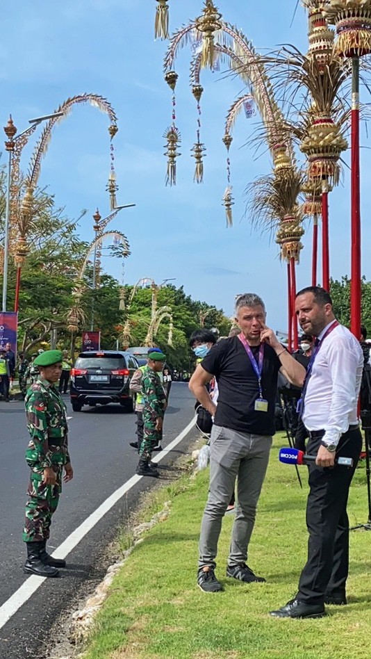 在印度尼西亞巴厘島,蓬葭(一種由竹竿撐起的高挑裝飾物)裝飾道路兩側,向出席G20峰會的賓客表示歡迎。