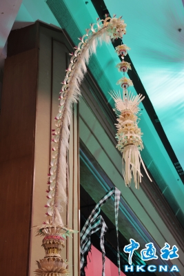 香港新聞網11月16日巴厘島電(記者 謝光磊 )每逢重大節日,巴厘島就會裝飾起蓬葭。它由椰子葉和鮮花製作而成,表達巴厘島人對萬物之神的祝福和感激。今年G20领导人峰会于11月15日至16日举行,主题是“共同复苏、强劲复苏”。在G20會議期間,有大約2500個十米高的蓬葭裝飾巴厘島街道和會場。圖為16日G20主會場、新聞中心和街道兩邊的蓬葭。