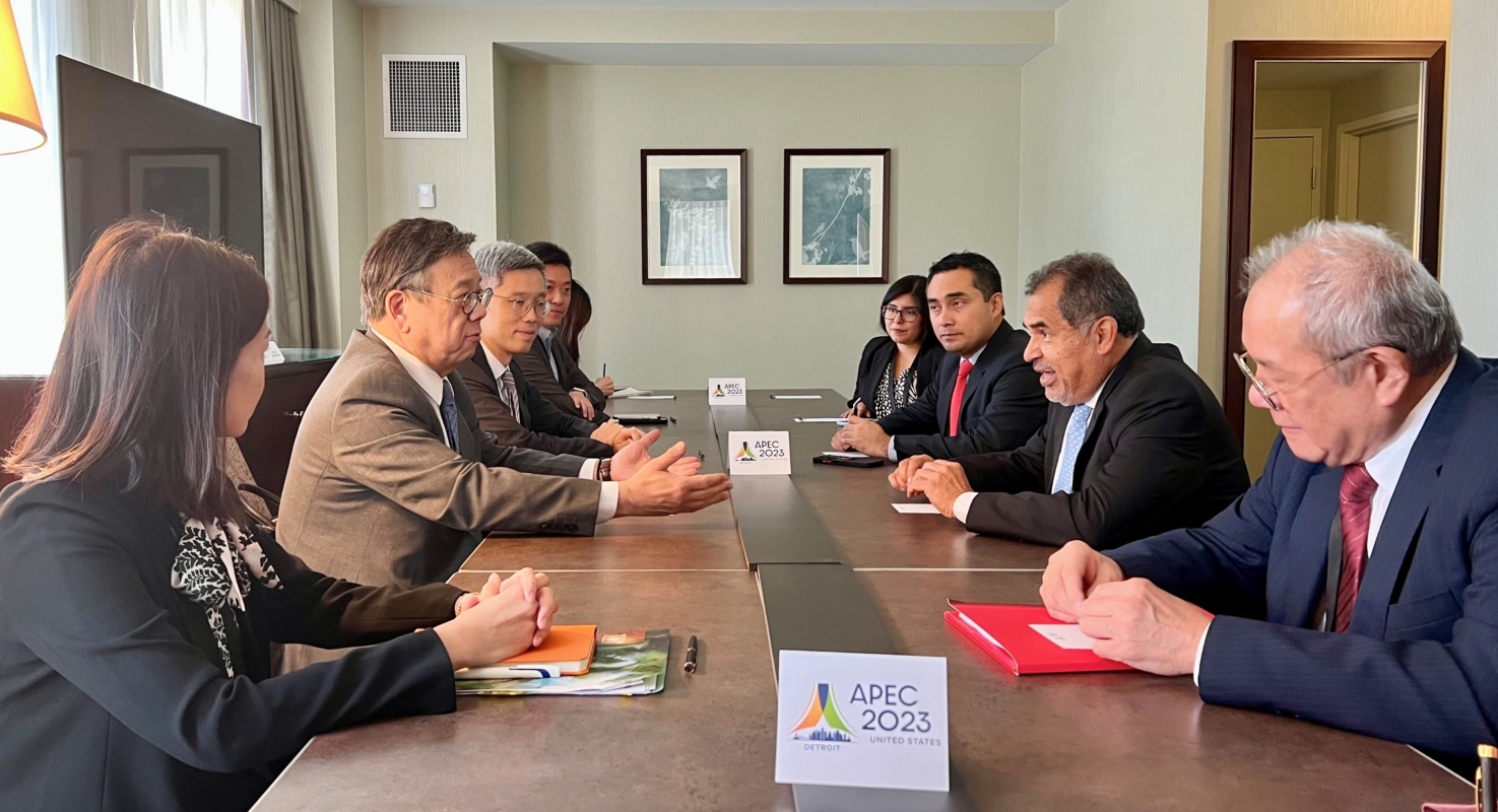 香港政府新聞處圖片 在會議期間,丘應樺與秘魯外貿和旅遊部長Juan Carlos Matthews Salazar舉行雙邊會議,討論多項經貿議題。(完) 【編輯:崔靜雯】