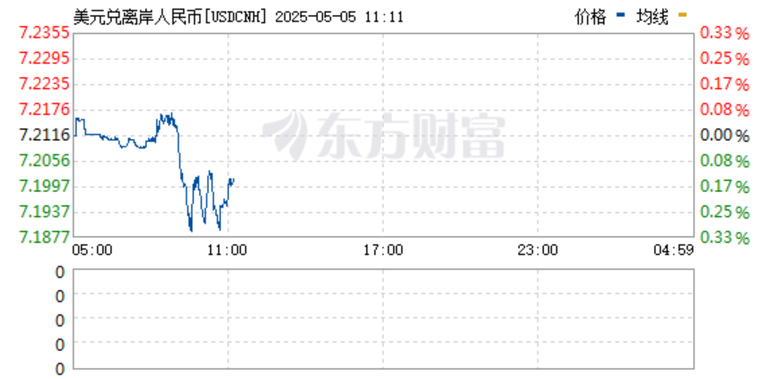 香港新聞網5月5日電 “五一”假期期間,離岸人民幣匯率持續較大幅度上漲。5月5日,人民幣繼續飆漲,A50指數期貨拉升。最新數據顯示,離岸人民幣兌美元升穿7.20關口,為去年11月以來首次,日內漲超100點。