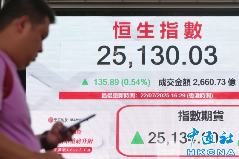 香港恒生指數漲135.89點 報25130.03點分享到: