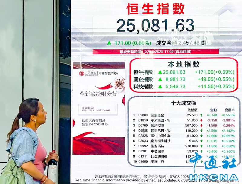 香港恒生指數漲171點 報25081點分享到: