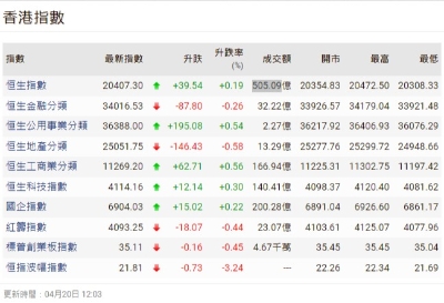 港股中斷三天連升跌94點 盤中創年內新高分享到: