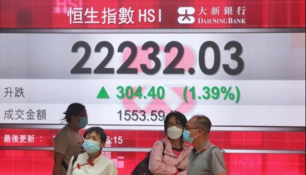 圖為香港證券交易所 香港中通社圖片 當天,恆指高開77點,報25711點,其後昇幅擴大,一度升394點至26027點,是近四年高位;最終收報25938點。國企指數升20點或1.32%,報9242點;恆生科技指數升74點或1.3%,報5828點。 京東健康及阿里健康分別升約6.4%及10%,是昇幅最大兩隻藍籌股;石藥及藥明生物跌逾3%,是表現最差兩隻藍籌股。金價持續破頂,山東黃金升約7.2%;靈寶黃金升6.2%;紫金礦業升4%。 永豐金融集團發表評論指,投資者繼續在減息憧憬中推升股市,熱情未變。股指方面,不論港股抑或美股,都有進帳。暫時而言,投資者情緒傾向押注減息,不單股市有此反應,債息變化以至金價等,都有類似動作。即市部署而言,港股氣氛不差,即使受颱風影響仍有不俗昇幅,恆指續以25918點為短期目標。 致富證券市務總監郭思治對中通社記者分析,單從技術上看,大市各組平均移動線排列是一個標準的升市模式。由於大市已累積不小昇幅,因此一旦出現較明顯的反覆,恆指會在反覆中稍跌穿10天(約在25370點)及20天線(約在25369點);但這只代表大市偶見高台回吐及消化,最關鍵的是50天線(約在24979點)的支持,即只要50天線不失,整個中期續尋頂趨勢不變。(完) 【編輯:赵晨】