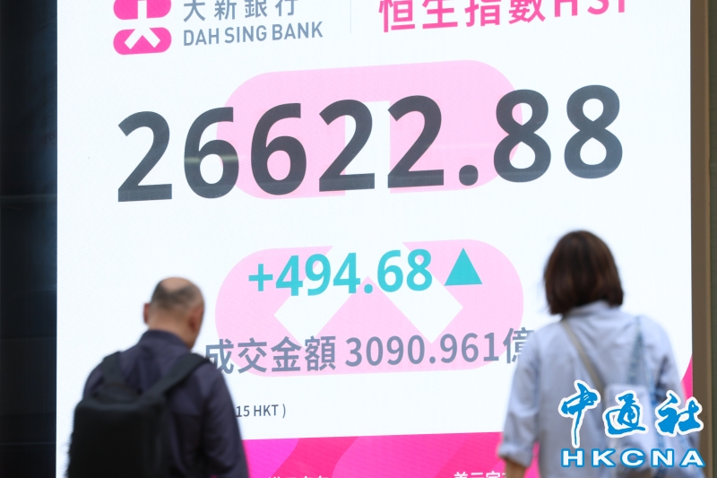 •   9月29日,截至收盤,香港恒生指數漲494.68點,漲幅1.89%,報市報26622.88點,主板全天成交約3091億港元。(香港中通社  鄧梓傑 攝) 香港中通社圖片