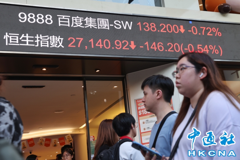 •   10月3日,截至收盤,香港恒生指數跌146.2點,跌幅0.54%,報27140.92點,主板全天成交1347.81億港元。(香港中通社記者  謝光磊 攝) 香港中通社圖片