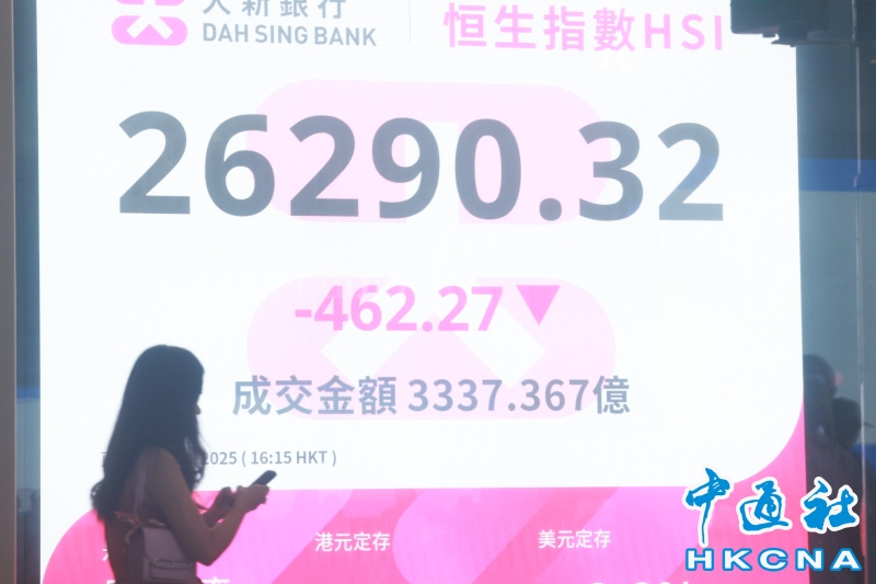•   10月10日,截止收盤,香港恒生指數跌462點,跌幅1.73%,報26290點,主板全天成交約3337億港元。(香港中通社記者  鄧梓傑 攝) 香港中通社圖片