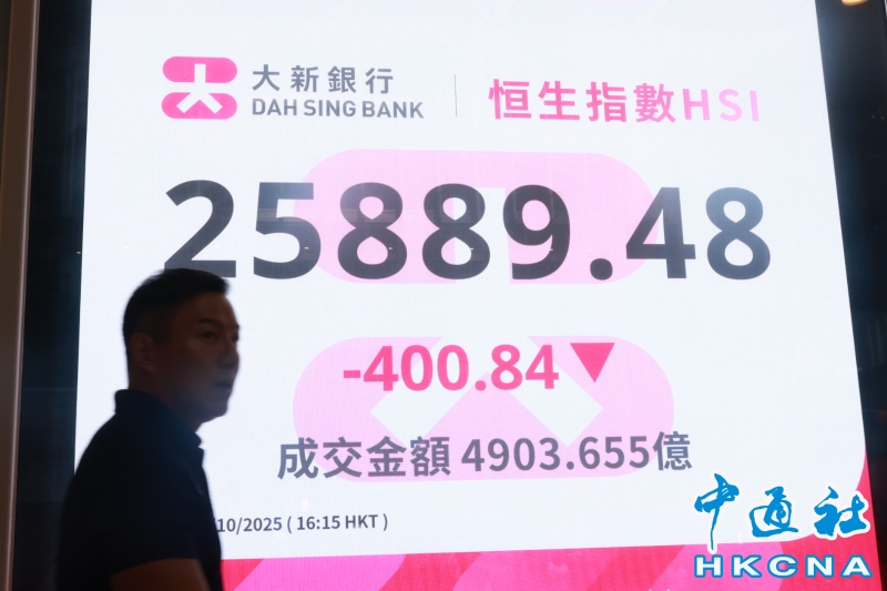 •   10月13日,截止收盤,香港恒生指數跌400.84點,跌幅1.52%,報25889.48點,主板全天成交4903.66億港元。(香港中通社 鄧梓傑 攝) 香港中通社圖片
