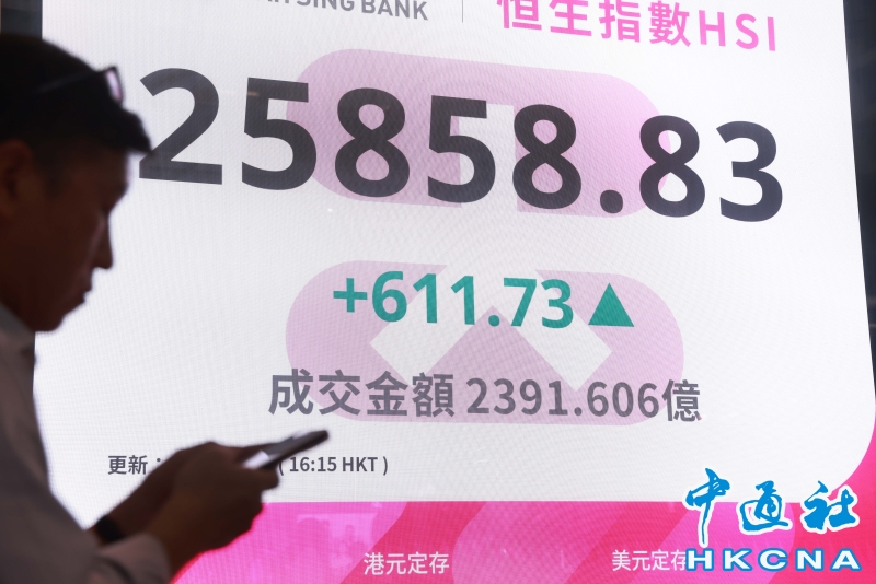 •   10月20日,截止收盤,香港恆生指數漲611.73點,漲幅2.42%,報25858.83點,主機板全天成交2391.61億港元。 (香港中通社 鄧梓傑攝) 香港中通社圖片