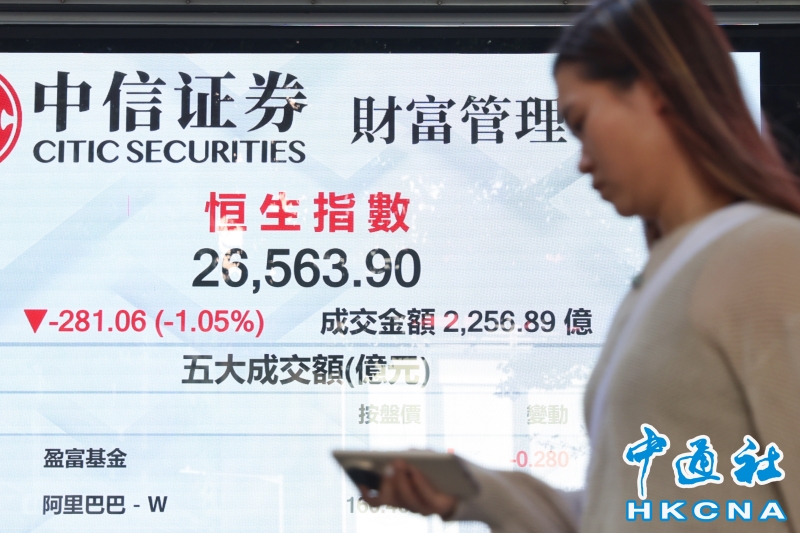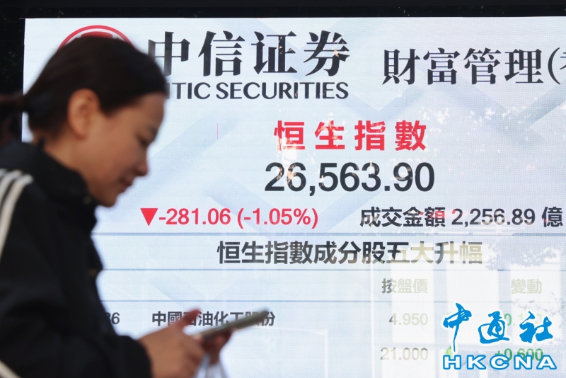 香港恒生指數跌281.06點 報26563.9點分享到: