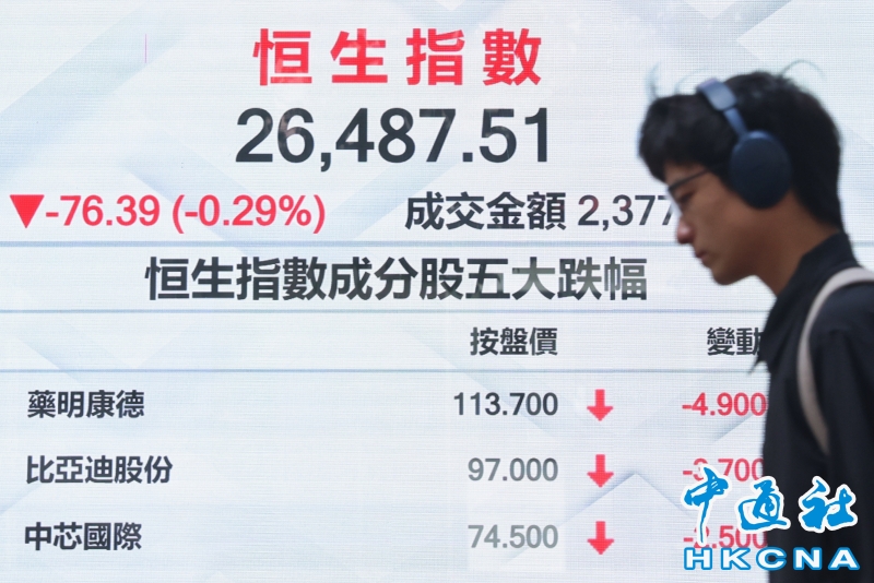 •   1月20日,截至收盤,香港恒生指數跌76.39點,跌幅0.29%,報26487.51點,主板全天成交2377.66億港元。 (香港中通社記者  謝光磊 攝) 香港中通社圖片