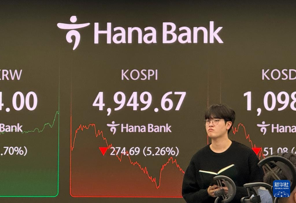 2月2日,韓國首都首爾一家銀行的職員在一塊顯示股市交易信息的大屏幕前工作。新華社圖片 近日,KOSPI連續刷新歷史新高,1月27日收盤價首次突破5000點。 KOSPI在2日開盤後不久即跌破5000點,隨後跌幅曾一度收窄。上午10時起,該指數急劇下跌並一度下探至4933.58點,跌幅超5%。當天中午12時31分,韓國證券交易所一度啟動今年以來首次暫停程序化交易“臨時停牌”措施。 另據韓聯社報道,被稱作“韓版納斯達克”的高斯達克指數(KOSDAQ)盤中下跌51.80點,跌幅達4.44%,收於1098.36點。(完) 【編輯:馬華】