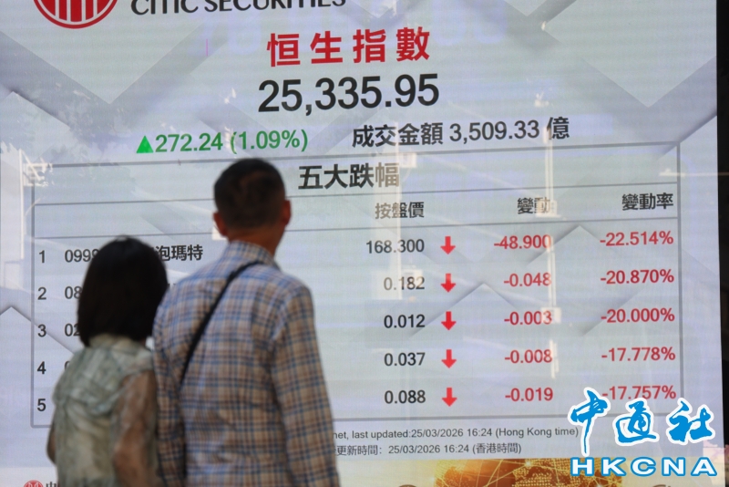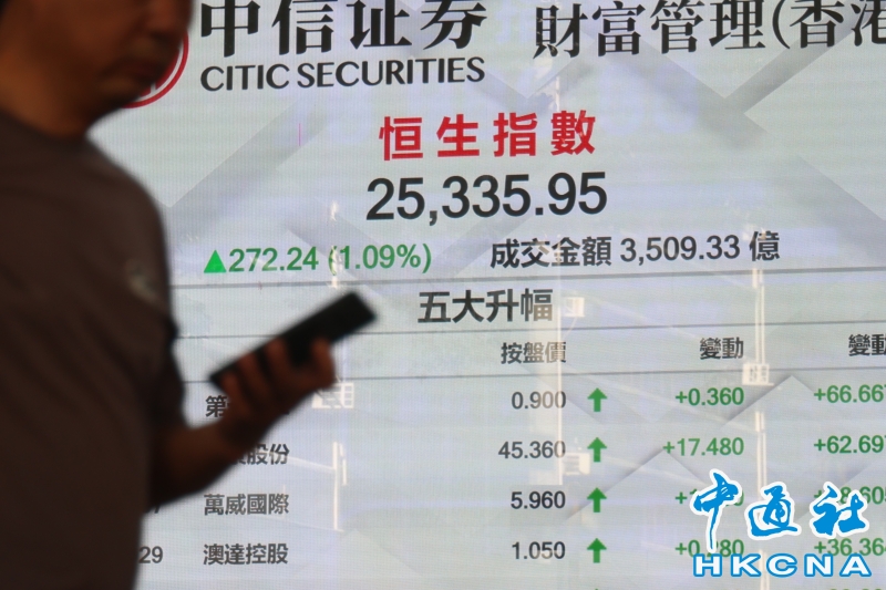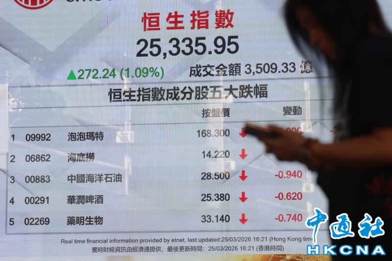 香港恒生指數漲272.24點 報25335.95點收盤分享到: