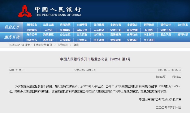 香港中通社4月9日電 4月9日,中國人民銀行(央行)開展5億元(人民幣,下同)7天期逆回購操作,利率維持在1.4%,與當日到期量完全對沖,公開市場實現零淨投放。這是繼4月8日同樣操作後的連續第二日“地量”續作,顯示央行維持流動性基本平衡的審慎姿態。