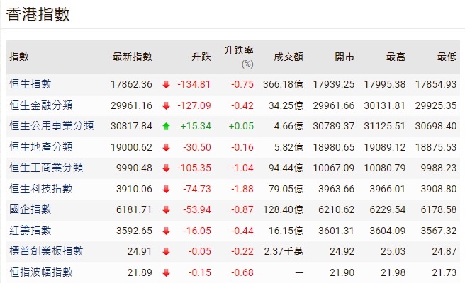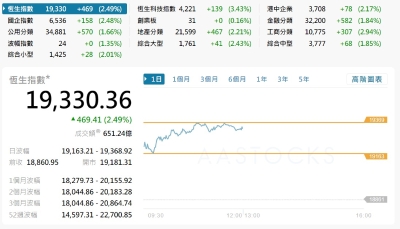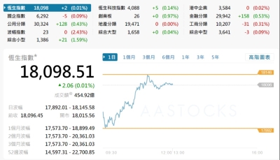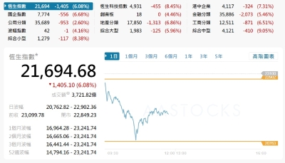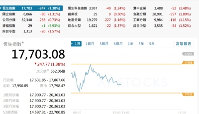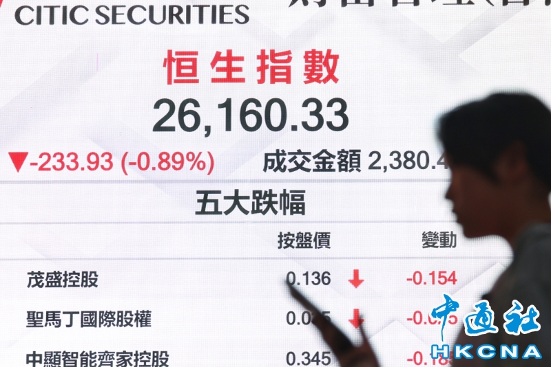 香港恒生指數跌233.93點 報26160.33點分享到: