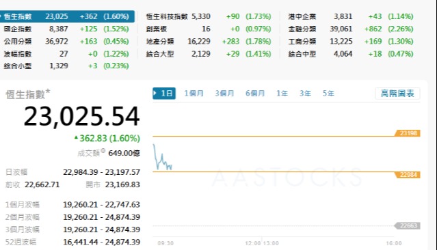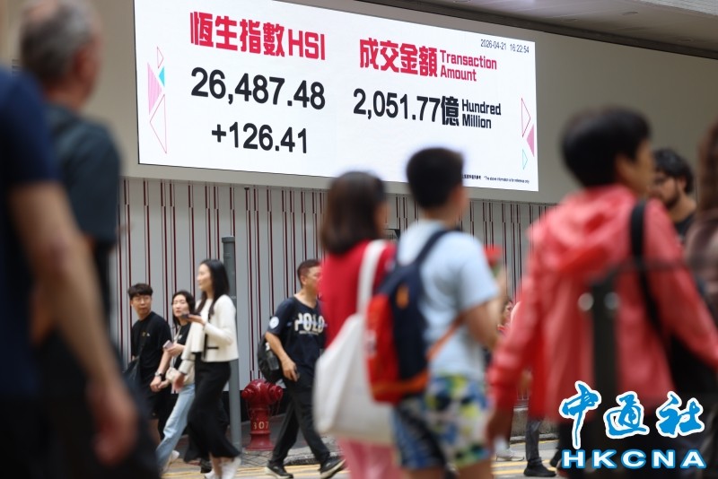 香港中通社4月21日電(記者 譚暢)市場憧憬美伊恢復談判,港股21日隨外圍造好,恆生指數當日升126點或0.5%,報26487點;大市全日成交額約為2051.77億港元。