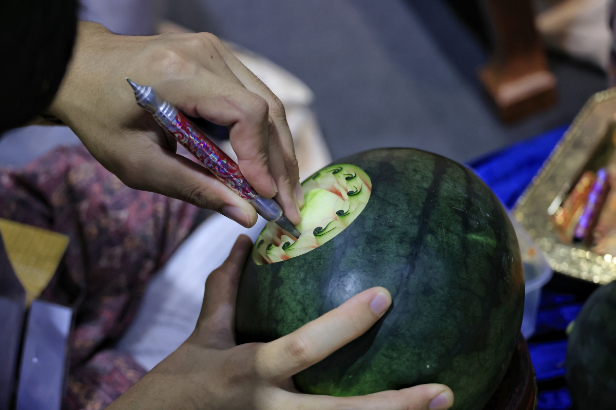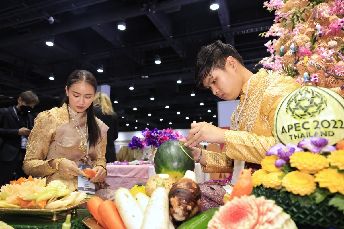 圖爲食雕工藝,正在雕刻“APEC2022 THAILAND”字樣
