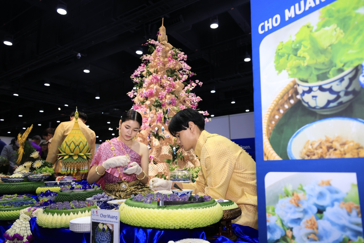香港新聞網11月18日曼谷電(記者 曹文毓)11月18日,亞太經濟合作組織(APEC)第二十九次領導人非正式會議在泰國曼谷登場。當日,會場媒體中心熱鬧非凡,有鋪位展示以現代手法保護泰式傳統文化的方式,並現場展示手工藝品及食雕工藝等。 現場感受到“泰式氣氛”濃鬱,有人展示泰式妝容和服裝,亦或是現場製作泰式小食以及食雕“APEC2022 THAILAND”字樣,相當精美,吸引不少人駐足。
