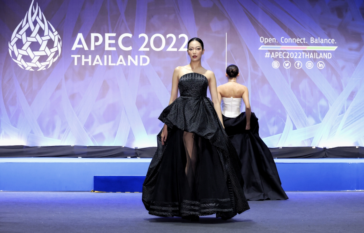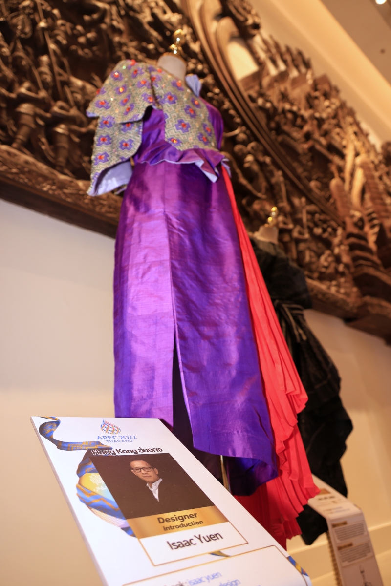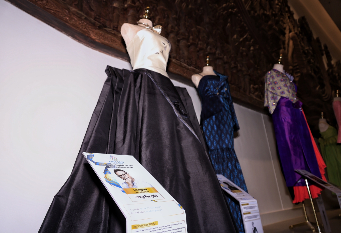 “亞太經合組織時尚設計師眼中的泰國絲綢”(Thai silk through the eyes of fashion designers from APEC)展覽在會場內展出 其中,來自中國大陸和香港的設計師作品讓人眼前一亮。