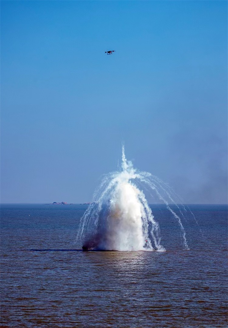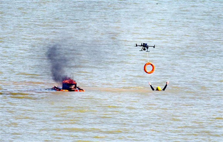 無人機海上滅火演練。(陸紹龍攝) 【編輯:王軼南】