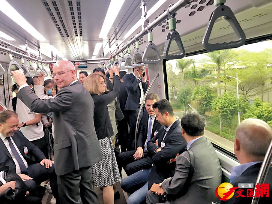 參訪團成員體驗乘坐比亞迪雲巴。圖源:香港文匯報記者 比亞迪雲巴是比亞迪投資百億元打造的具有獨立路權的立體智能交通系統,當天,考察團成員上車體驗乘坐。作為一種輕量化的軌道交通方式,比亞迪雲巴和地鐵相比,在造價成本、環保、建設周期上,都擁有巨大優勢。比如,在造價上,每公里的成本為1億元到2億元,只有地鐵的十分之一左右。目前,比亞迪雲巴已經在深圳、重慶、長沙部分線路運行,亦有外國客戶正在對接。 中國印度尼西亞商會會長何震發亦稱不虛此行,他表示,印尼是東南亞人口和面積最大的國家,市場潛力大,全國鎳資源十分豐富,這是新能源電池的重要原材料。未來,印尼和中國在新能源領域有着巨大的合作空間。 除了“創新灣區”、“人文灣區”,粵港澳大灣區還致力於打造“綠色灣區”。穿過垃圾焚燒設備,去煙囪上喝咖啡看海景是什麼感受?昨日(20日)下午,參訪團一行來到深圳南山能源生態園,了解深圳垃圾焚燒處理、垃圾循環再生利用等最新成果。 南山能源生態園廠區沒有圍牆,建築外觀和科普教育及惠民工程於去年建成。生態園內,創新性打造了首個藝術展覽館──循環再生藝術展覽館,以及深圳唯一建在煙囪上的天空吧咖啡廳等配套設施。 在天空吧中,一眾參訪團成員一邊喝咖啡,一邊欣賞着前海的無敵海景,遠處大灣區新的超級工程深中通道清晰可見。 廣東省委副書記、深圳市委書記孟凡利20日中午在歡迎午宴上表示,深圳很願意在國家外交大局下,加強與世界各國城市、企業、非營利組織的交流與合作。深圳已經與全球57個國家的90個城市結為友好城市,希望今後與更多城市建立多種交流合作機制和渠道。 他說,“深圳與香港只有一河之隔,大家可以在周末、假期與家人、朋友、同事一起,到深圳觀光旅遊、休閒度假。” (完) 【編輯:王軼南】
