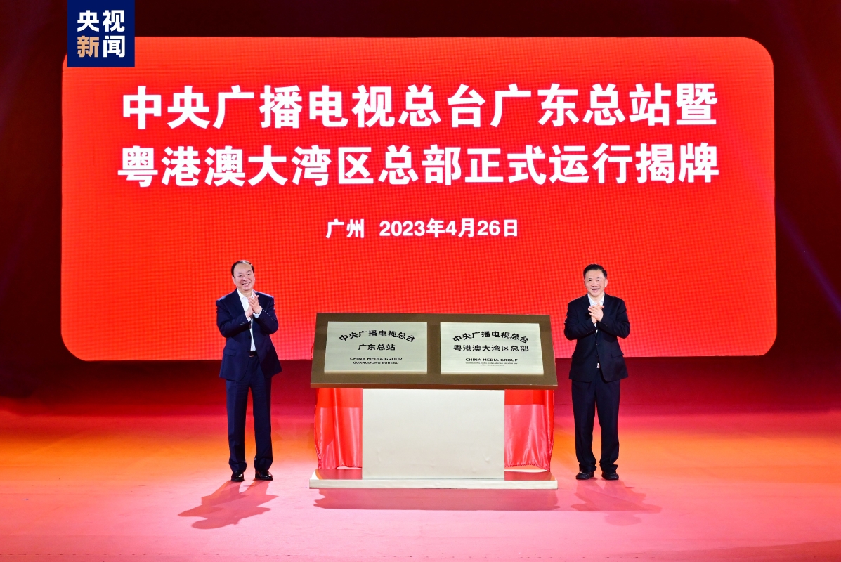 香港新聞網4月27日電 4月26日,中央廣播電視總台廣東總站暨粵港澳大灣區總部在廣州運行揭牌。廣東省委書記黃坤明出席,並與中宣部副部長、中央廣播電視總台台長慎海雄揭牌。