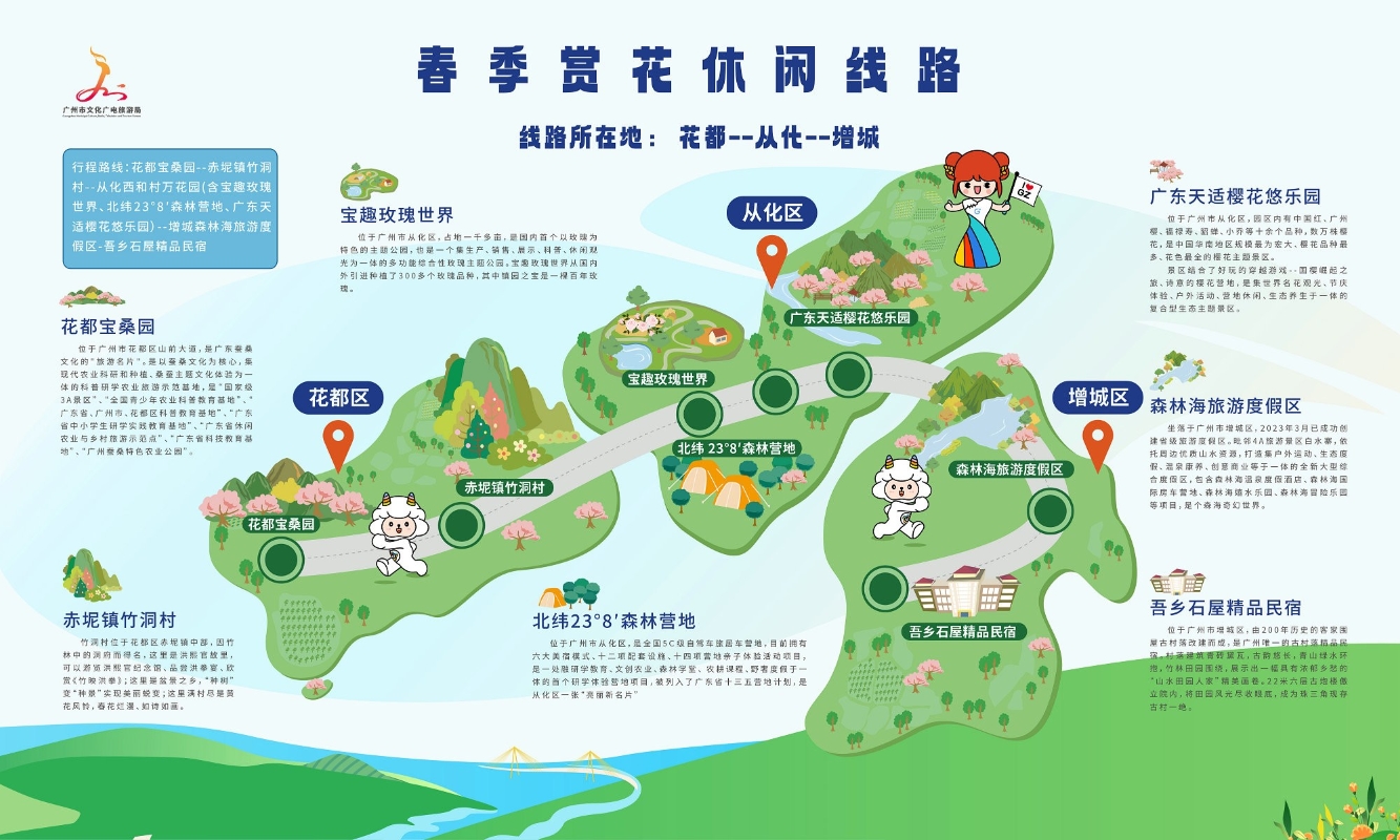 百萬自駕車進廣州鄉村春季主題線路。圖源:香港商報 隨着短途近郊鄉村自駕遊人氣旺盛,各種以生態、文化為主題的自駕遊備受大灣區遊客青睞。目前,廣州市共有5個全國鄉村旅遊重點村、23個省級文化和旅遊特色村、14條省級鄉村旅遊精品線路、17個廣州旅遊文化特色村。為了讓廣大自駕車友獲得更加多樣化、個性化的廣州鄉村自駕遊體驗,現場還發布百萬自駕車進廣州鄉村春季休閒遊主題線路,串聯花都、從化、增城等地,解鎖採摘、露營、玩水、賞花等一站式遊玩新體驗。(完) 【編輯:王軼南】