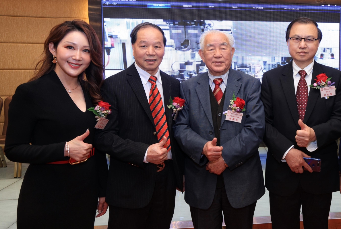 (左起)蔡艷珊、香港茶藝軒董事長劉正慶、福建社團聯會永遠榮譽主席林廣兆、香港漳州市區同鄉會會長林紹奮出席活動