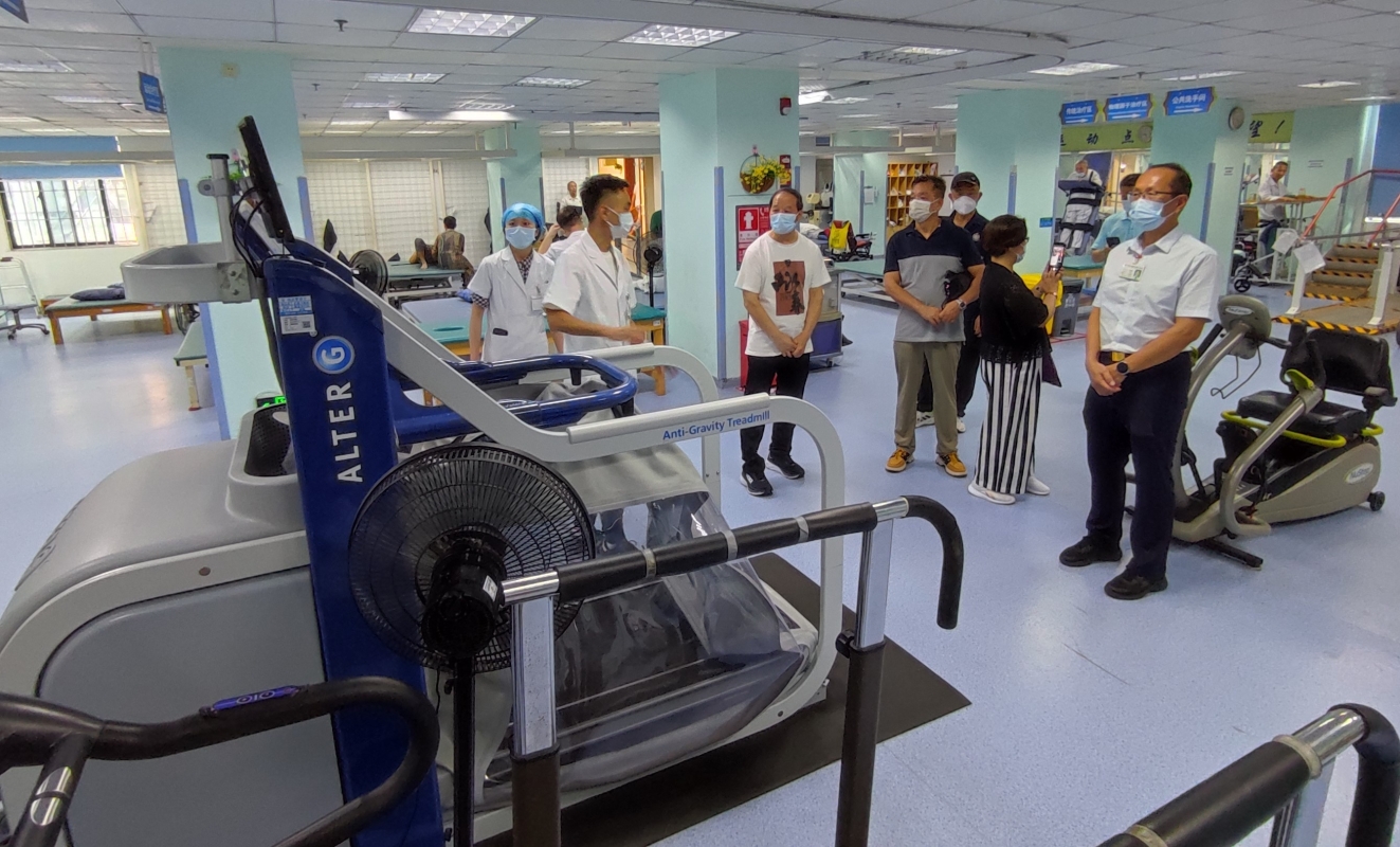 一行嘉賓在南澳人民醫院參觀了康復運動治療室