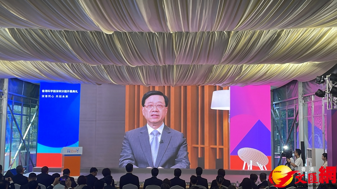 行政長官李家超進行視頻致辭。圖源:大公文匯網 香港科技園公司表示,目前有超過10間創科公司進駐園區。公司目標吸引約150家企業落戶,將重點吸引來自醫瘵科技、大數據及人工智能、機械人技術、新材料、微電子、金融科技和可持續發展七大領域企業。 深圳分園總建築面積31000平方米,設有共享空間、實驗室及活動場地等。 (完) 【編輯:王軼南】