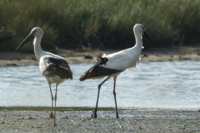 東方白鸛駐足。 受訪者供圖 “很幸運與東方白鸛‘偶遇’。”茂名本土攝影愛好者陳漢鍾回憶說,當時他在茂名電白海邊觀鳥時,突然一群與眾不同的大鳥出現在他的視線範圍之內。有著多年觀鳥經驗的他立刻意識到這群大鳥的獨特,隨即用長焦鏡頭記錄下了這一珍貴影像。 “國家一級保護野生動物”東方白鸛成群現身粵西 據香港文匯網報道,經行業專家鑒別,此群大鳥是“國家一級保護野生動物”東方白鸛。據悉,東方白鸛夏天主要分布在中國東北、內蒙古或日本、朝鮮等地,冬天遷徙到華東、華南區域,主要集中在江西鄱陽湖、江蘇揚州等地。 廣東省科學院動物研究所副所長張強表示,廣東省首次觀測到東方白鸛是在上個世紀90年代,曾在珠海有記錄。近年東方白鸛陸續光顧廣東部分地區,包括廣州、深圳、汕頭、佛山、東莞、中山、惠州、汕尾、湛江等地,一般以零星個體形式出現,偶爾也有群體。如廣州南沙濕地最多曾觀測到49只東方白鸛“同框”;深圳福田紅樹林自然保護區曾記錄到27只;東莞虎門曾記錄到40餘只。 張強稱,近年廣東生態持續向好,可能會成為更多候鳥選擇的遷徙停歇地與越冬地。作為國際候鳥遷飛的重要通道,廣東歷史記錄有野生鳥類584種,其中具有遷徙屬性鳥類的佔比高達70.5%,共412種。廣東省林業局表示,接下來,廣東將繼續開展調查,系統掌握候鳥資源、空間分布與棲息地生境質量信息,建立完善的遷徙鳥類保護網絡,精準開展珍稀瀕危候鳥的保護、監測與救護工作,有效提升廣東生物多樣性保護水平。 【編輯:胡雪石】