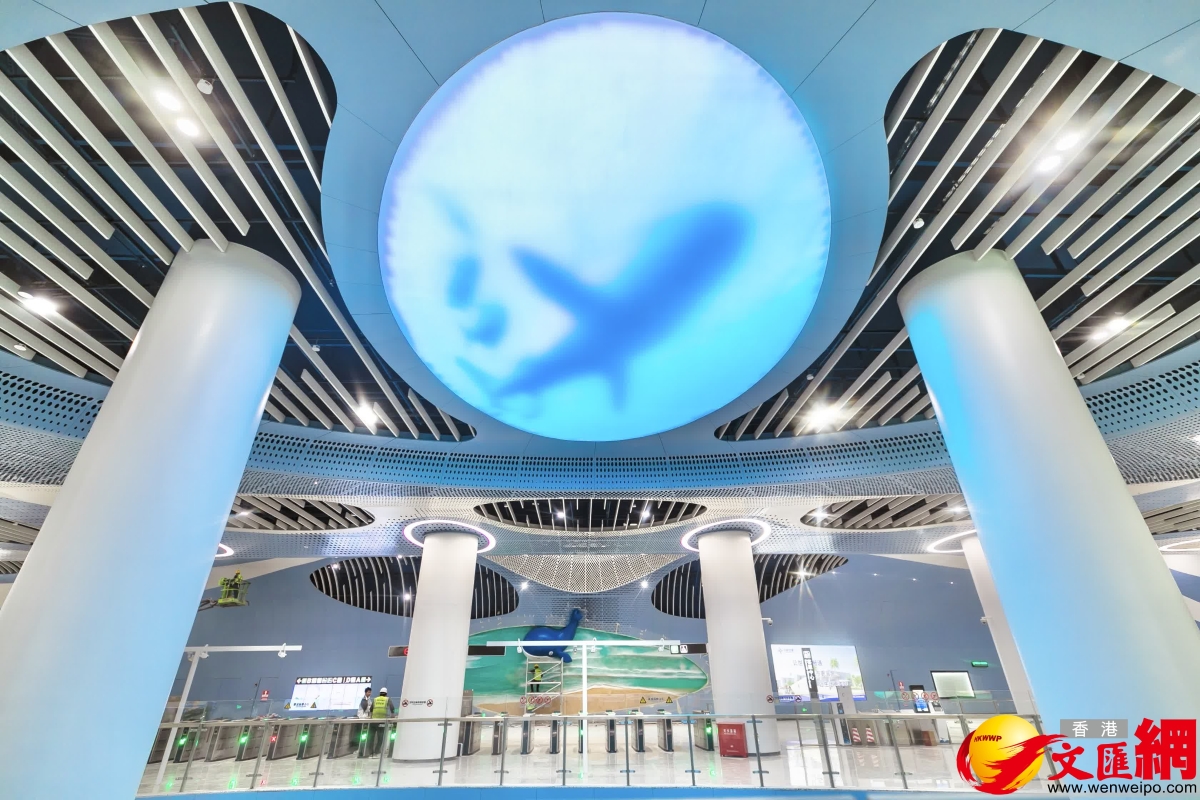 深圳地鐵8號線二期站內設計海洋主題風格。來源:香港文匯網 以海藍色鯨魚為主題的藝術品陳列,為大梅沙站藝術空間增加了一番童趣。市民可以在站廳層和隨浪花擺動的“鯨魚”打招呼,亦可以坐在站台層的鯨魚長椅上小憩。車站出入口以鯨魚為原型,通過牆面及檐口線條,和側立面內嵌的玻璃,刻畫出神似鯨魚嘴的形態。“鯨魚嘴”及通透的天窗,打通地上空間與地下空間的聯繫,將海濱公園多層次立體景觀空間延伸至地下車站內,營造出潮韻浪綿山海的意境。 【編輯:胡雪石】