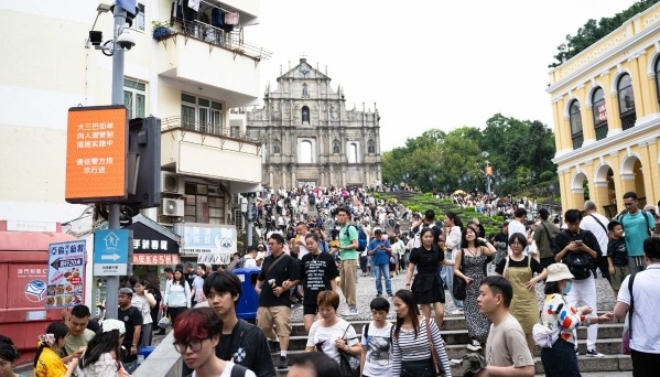 2月12日,旅客在澳門大三巴牌坊參觀。香港中通社圖片 隨著澳門本地經濟活動及服務出口有序復常,2023年本地生產總值錄得實質增長80.5%,主要動力來自旅遊服務出口。全年人均本地生產總值為55.9萬澳門元。 當局稱,在入境旅客人次按年升近4倍的帶動下,全年博彩服務出口及其他旅遊服務出口按年分別上昇3.44倍及1.28倍。去年第4季,澳門博彩服務出口及其他旅遊服務出口按年分別上昇4.31倍及1.3倍。 翻查資料,澳門2023年全年入境旅客共2821.3萬人次,恢復至疫情前逾七成水平。(完) 【編輯:胡雪石】