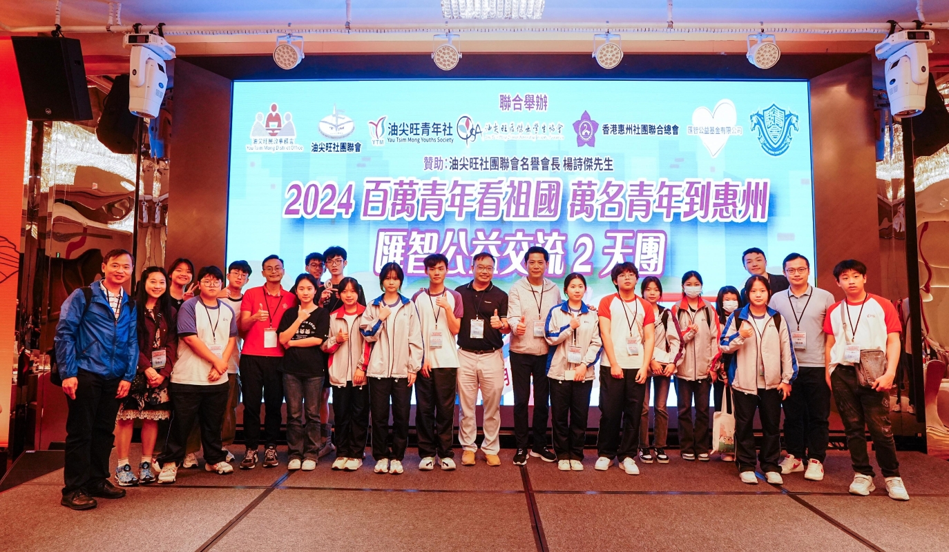 香港新聞網4月1日電 由香港油尖旺社團聯會名譽會長楊詩傑贊助,油尖旺民政事務處、油尖旺社團聯會、油尖旺青年社、油尖旺區傑出學生協會、香港惠州社團聯合總會、匯智公益及香港駿青會合辦的“2024百萬青年到祖國 萬名青年到惠州”兩日一夜交流團,超120位香港青少年於3月31日順利出發。