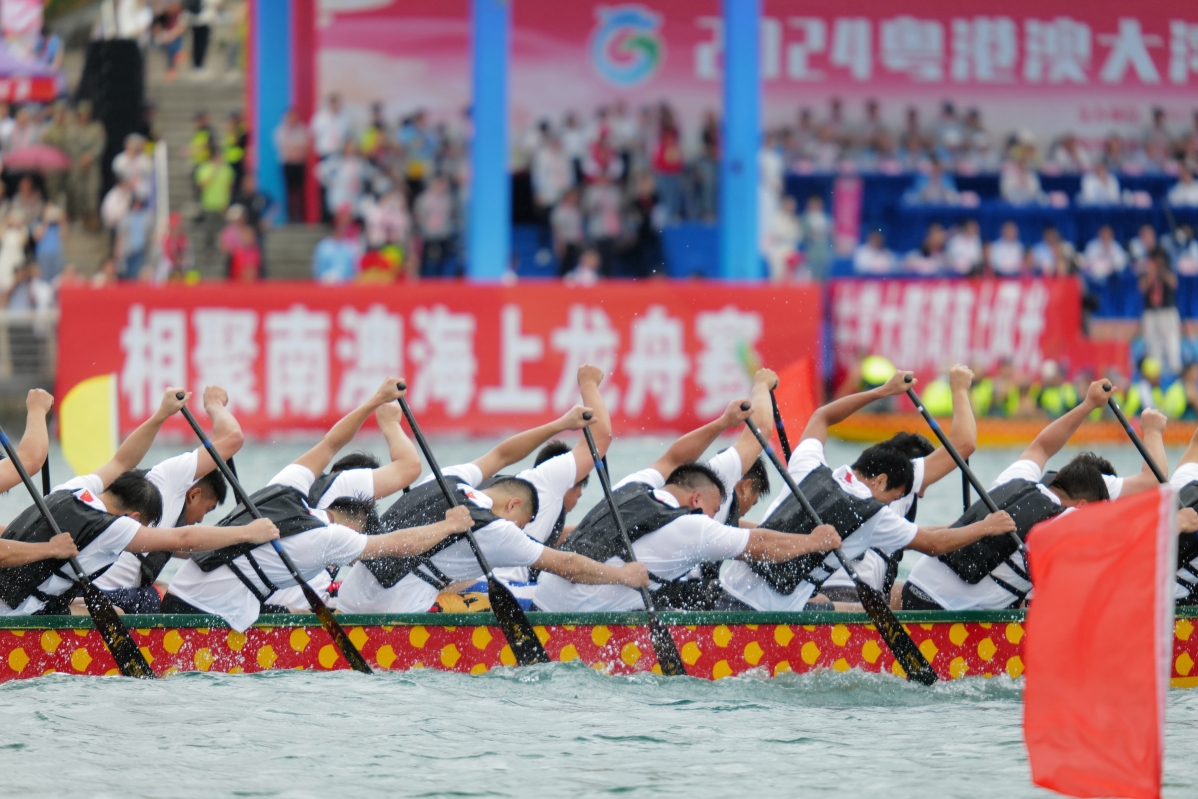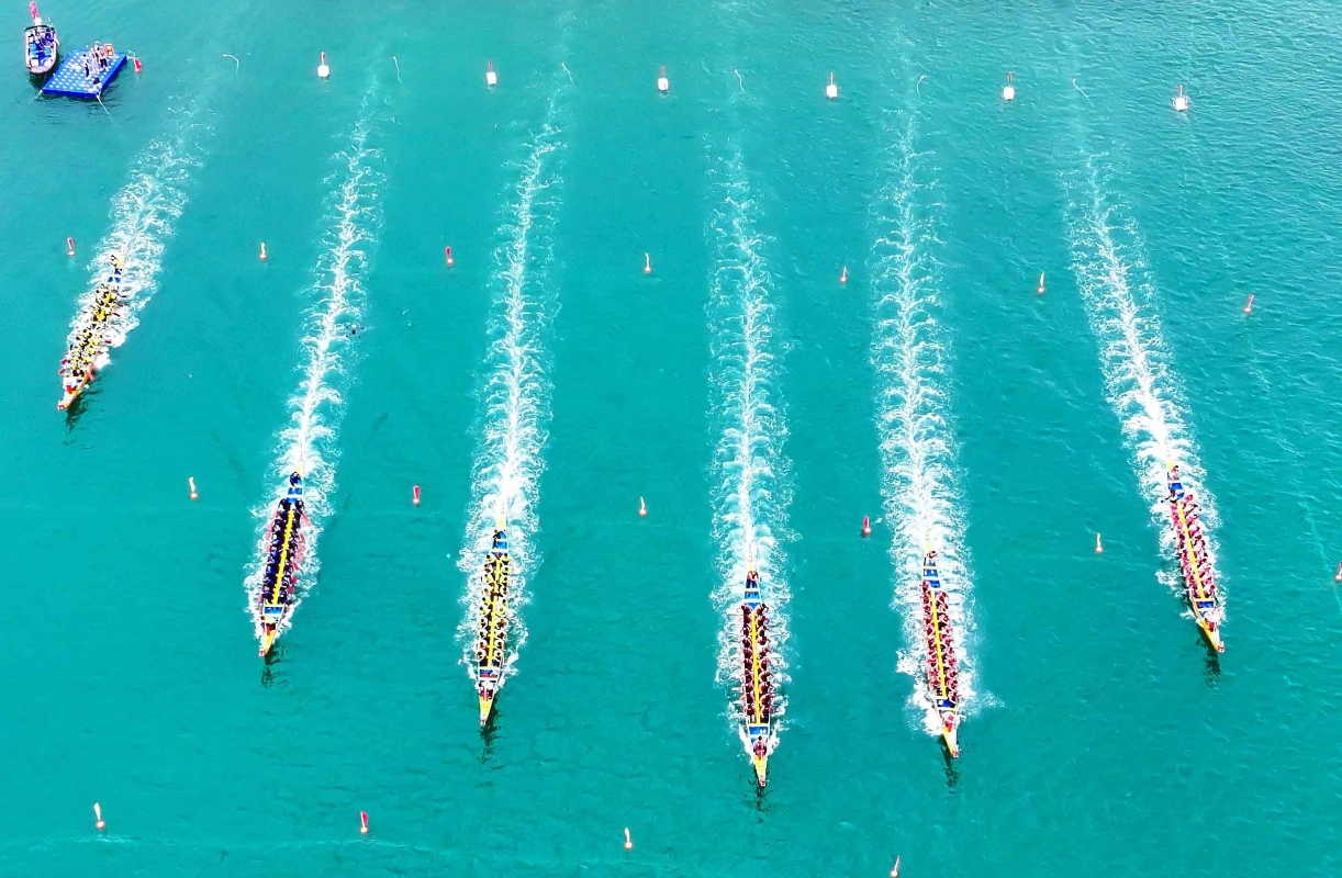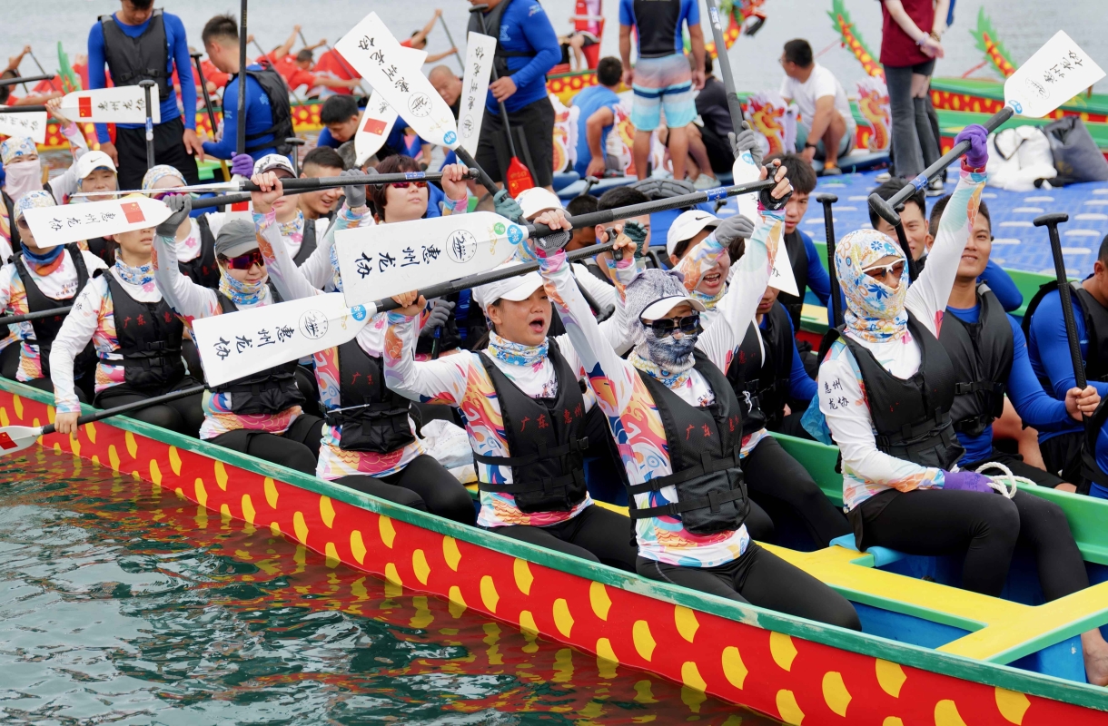 香港新聞網6月7日深圳電 ( 聞子 圖文) 6月7日,深圳大鵬新區南澳月亮灣海域有12支龍舟代表隊奮楫爭先,共同演繹海上“速度與激情”。當天,2024粵港澳大灣區(深圳南澳)海上龍舟賽在深圳大鵬新區南澳月亮灣舉行,來自大灣區共30支代表隊參賽。每年在南澳海上舉行的龍舟賽,吸引深圳市及省內外各地、港澳眾多龍舟隊的參與,遠近眾多遊客也紛紛前來參觀。 南澳海上龍舟賽自作為深圳市唯一的海上龍舟賽,自從1998年舉辦首屆至今已成功進行了20屆。而南澳海上賽龍舟的習俗有著70多年的歷史,不僅是大鵬人過端午的“保留節目”,也成為了大鵬當地極具品牌性的文化活動。