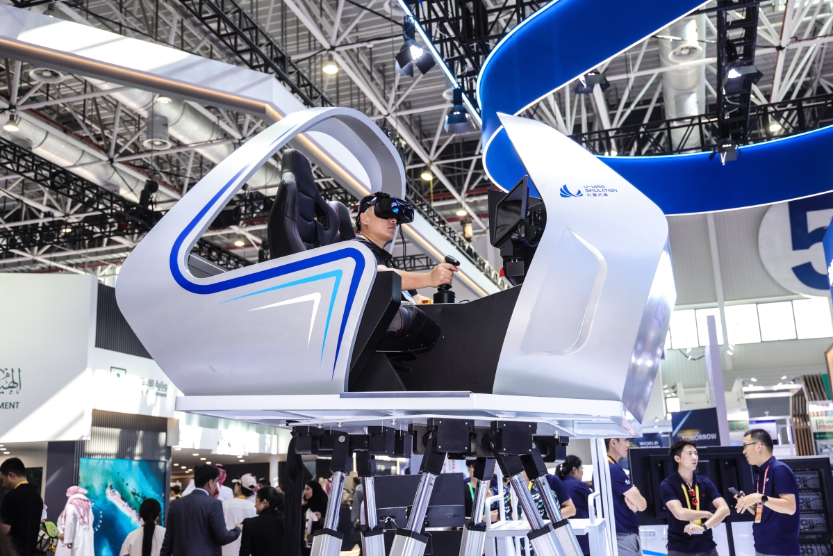 參觀者在感受航空新科技
